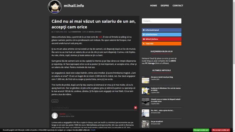 Cum suportul lor este inexistent (răspund la mail-uri după ani lumină), toamna trecută am decis să plec pe un shared hosting cam la fel de scump, dar care are suport pe chat. Nu mai zic că au și un AI care e super de ajutor.
